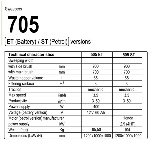 Model Sweeper 705 Versions ( 705 ET / 705 ST )