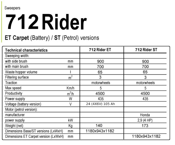 Model Sweeper Ride-on 712 Versions ( 712 ET / 712 ST )
