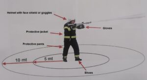 Even people in the 5m area should wear the same protection as the operator.